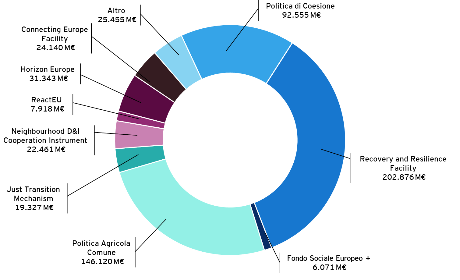 In questo quadro, l’Italia è chiamata a destinare una quota significativa dei fondi complessivamente assegnati dal bilancio comunitario a progetti che contribuiscano a conseguire gli obiettivi climatici europei, segnatamente 7,9 miliardi sul Fondo Europeo di Sviluppo Regionale per l’Italia (il 30% dei 26,34 miliardi complessivi) e, nell’ambito del Piano Nazionale di Ripresa e Resilienza, dedica il 37,5% del totale, ovvero 71,7 miliardi, di cui circa 10,7 dedicati specificamente alle misure di adattamento.