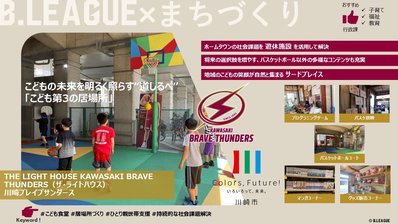 未活用だった高架下に、こどもが無料で使えるバスケットコート併設の「第三の居場所」を整備。Bクラブと行政が連携し、遊び・学び・交流を支える安心を提供。