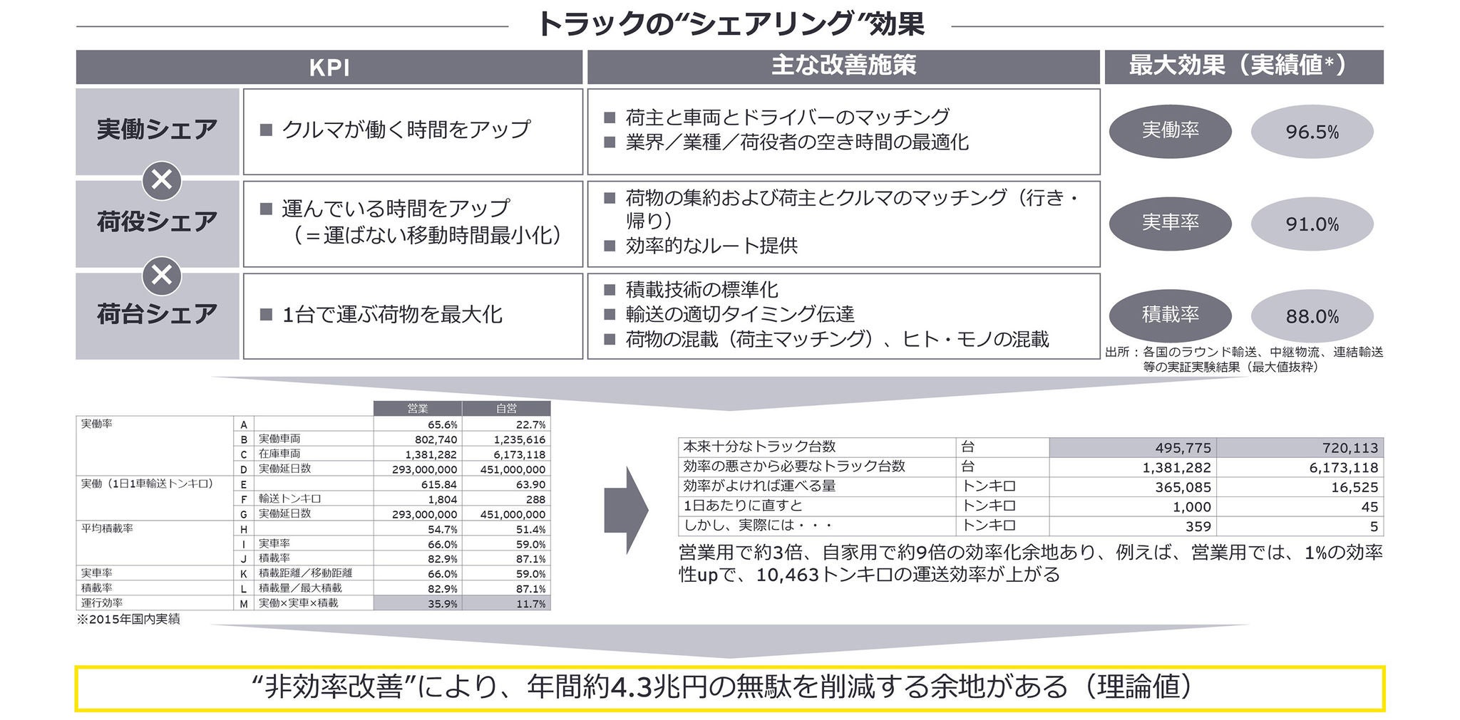 この持続可能な物流構築には、トラック情報/荷台情報/ドライバー情報/積み荷情報/倉庫空き情報等のモノの移動データの有機的な可視化が必要になります。