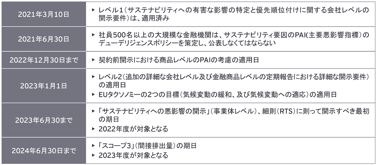 表2:SFDR対応のための時間軸