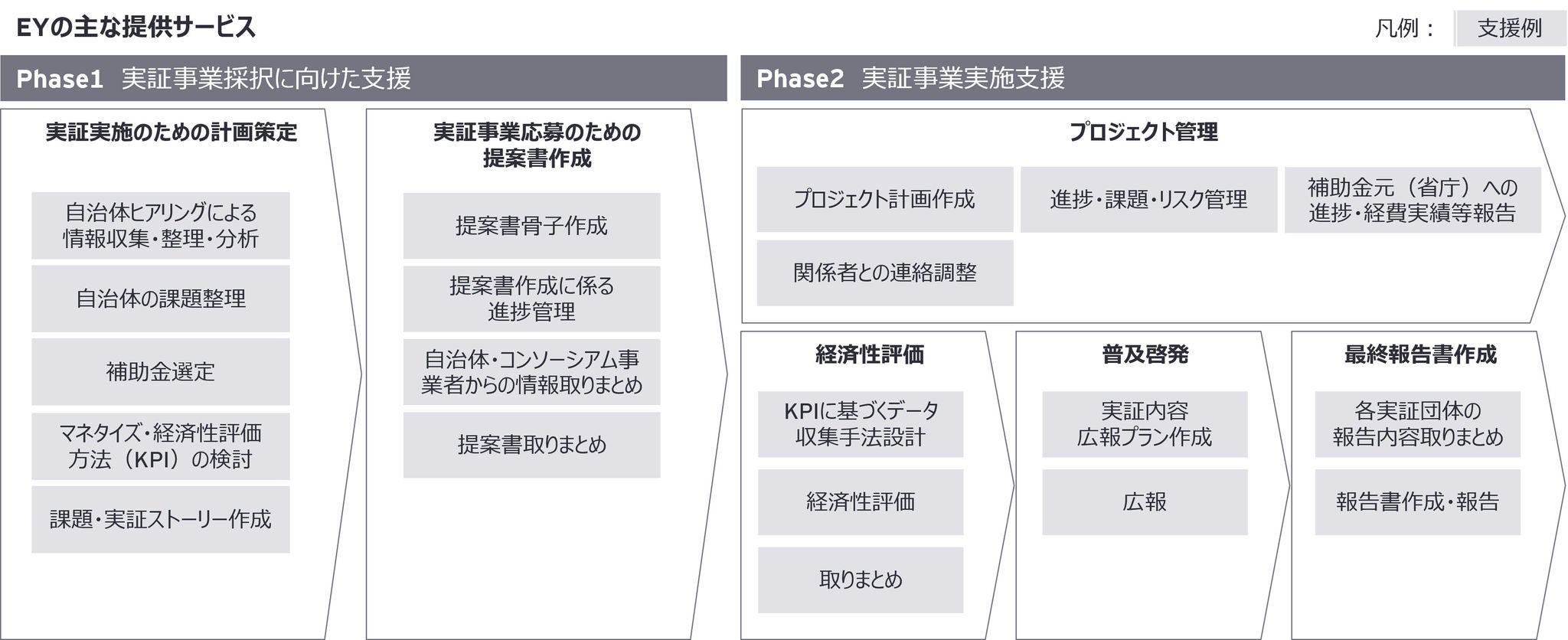 EYSCは地域の課題に対応するサービスを提供するため、実証事業の選定から実施まで一貫して支援を行っています。当社の専門家チームは、さまざまなコンサルティングサービスを通じて蓄積した経験と知見により、社会インフラ実証事業における予期せぬリスクの監視と管理を行い、社会実装に向けた事業推進を支援します。EYSCは、これらの活動を通じて、先進技術を用いたサービスを提供し、安全で快適な日常生活を支える社会づくりに貢献します。