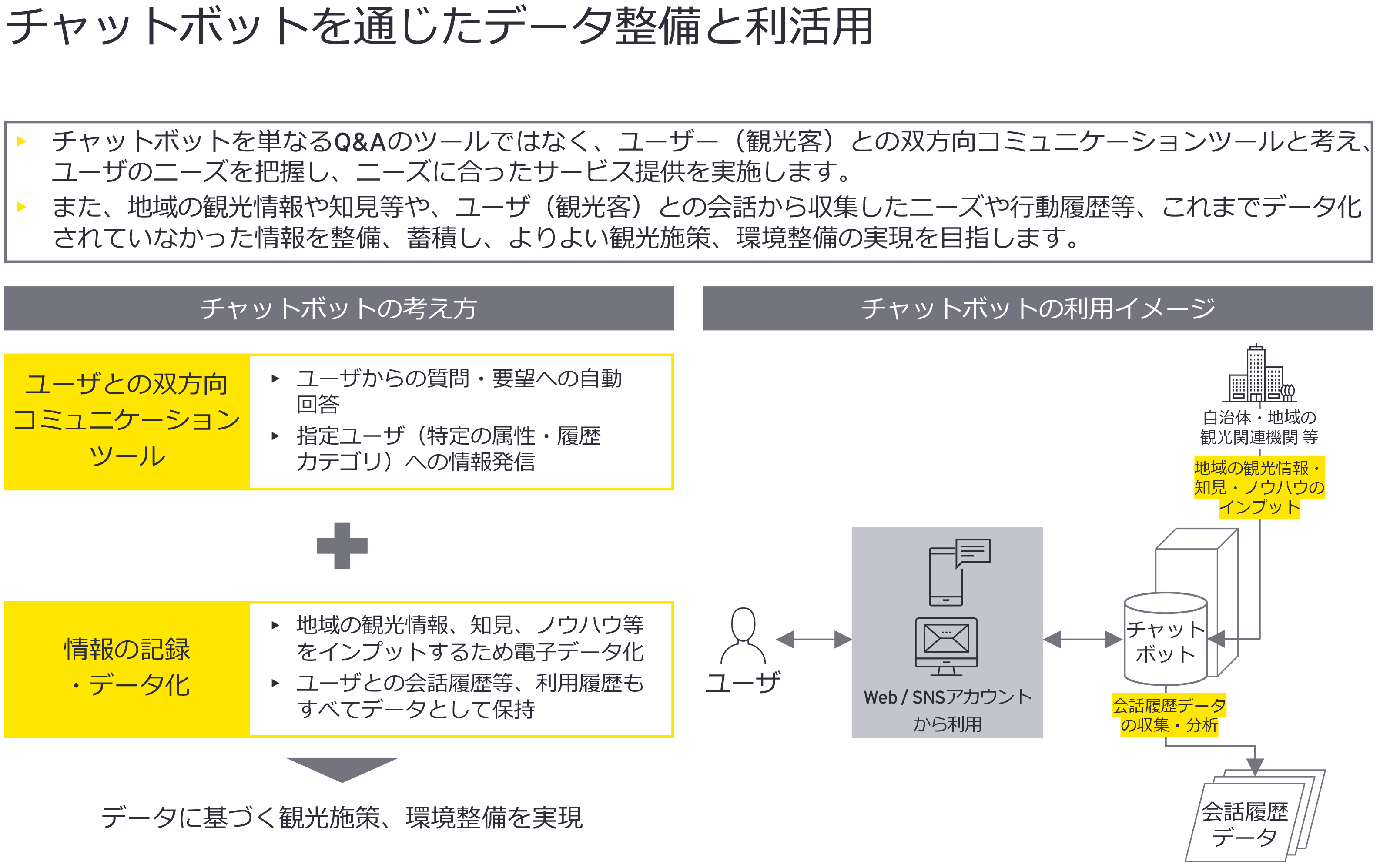 世界情勢の変動や感染症の蔓延など、外的要因に大きな影響を受ける中、ツーリズムにおけるDXの必要性は加速しています。またこのデータ活用により観光は地域のさまざまな産業をつなぐハブとなり得ます。