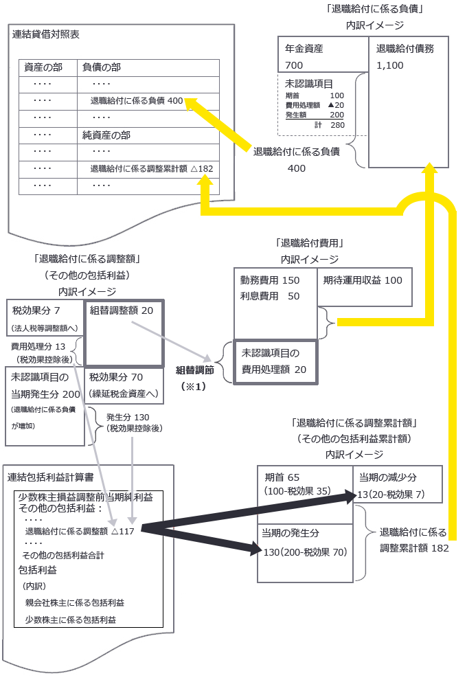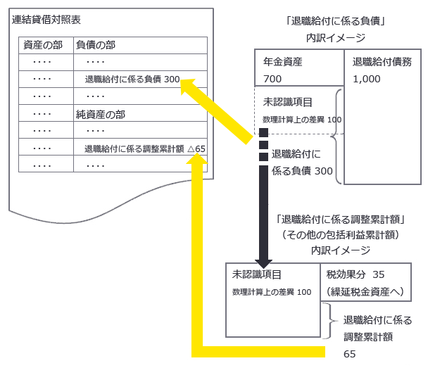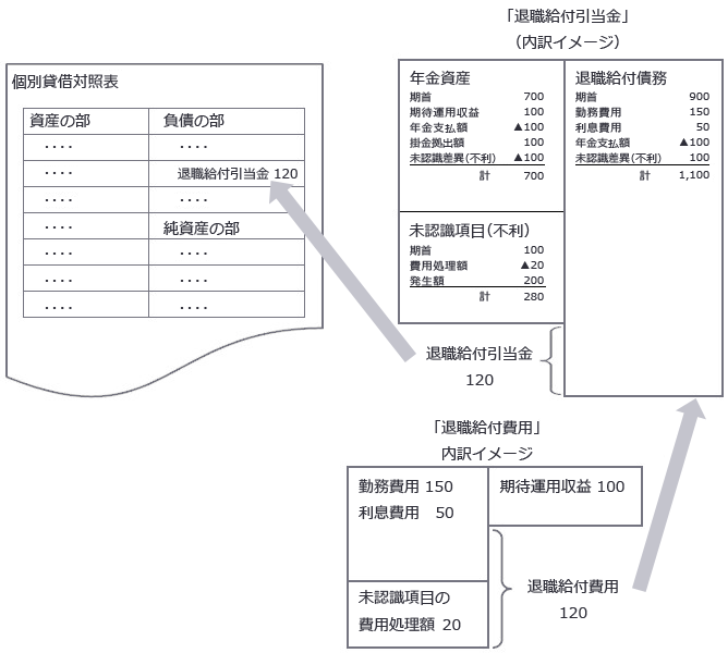 • 個別財務諸表上の「退職給付引当金」と、連結財務諸表上の「退職給付に係る負債」の関係