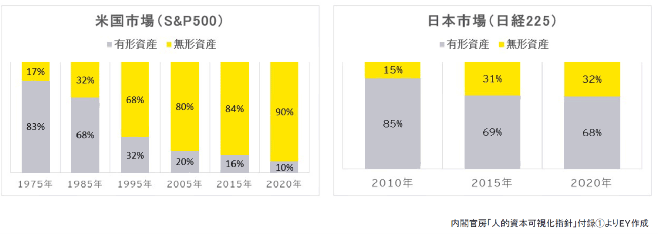 近年あらゆる業界で、企業のサステナビリティへの取り組みやその情報開示に関して、投資家等ステークホルダーの注目度が高まっています。その理由はさまざまですが、企業価値評価における無形資産の重要性が高まっていることが主因の一つであると考えられます。図表1は時価総額に占める無形資産の割合について、米国市場(S&P500)と日本市場(日経225)を比較したものです。米国市場と比べて日本市場では、時価総額に占める無形資産の割合はまだ相対的に高くないものの、年々無形資産の重要性が増してきていることが読み取れます。