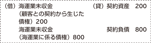 (注1) 1,000のうち、200については法的な請求権およびサービスに対する対価性を具備しています。一方、残り800については、法的な請求権はあるが、対価性を有していない(未履行のサービスである)ことから分けて記載しましたが、いずれも表示は「海運業未収金」としています。
