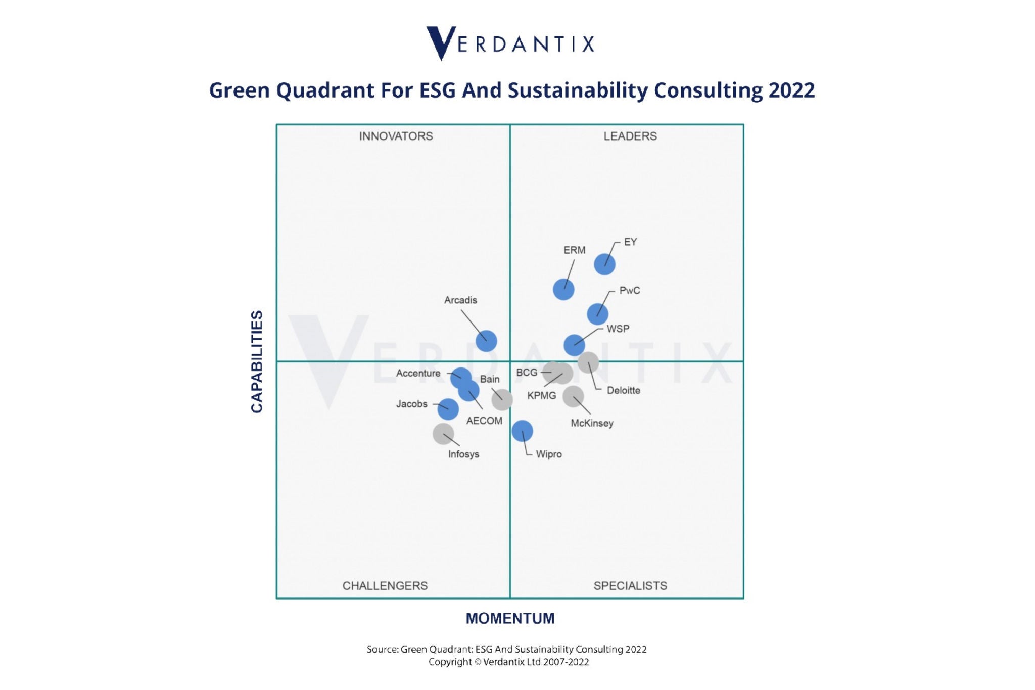 사진설명: EY는 버댄틱스의 ‘2022 그린 쿼드런트: ESG & 지속가능성 컨설팅’ 보고서에서 ESG 서비스 및 지속가능성 컨설팅 분야의 리더로 선정되었다 (출처=버댄틱스)