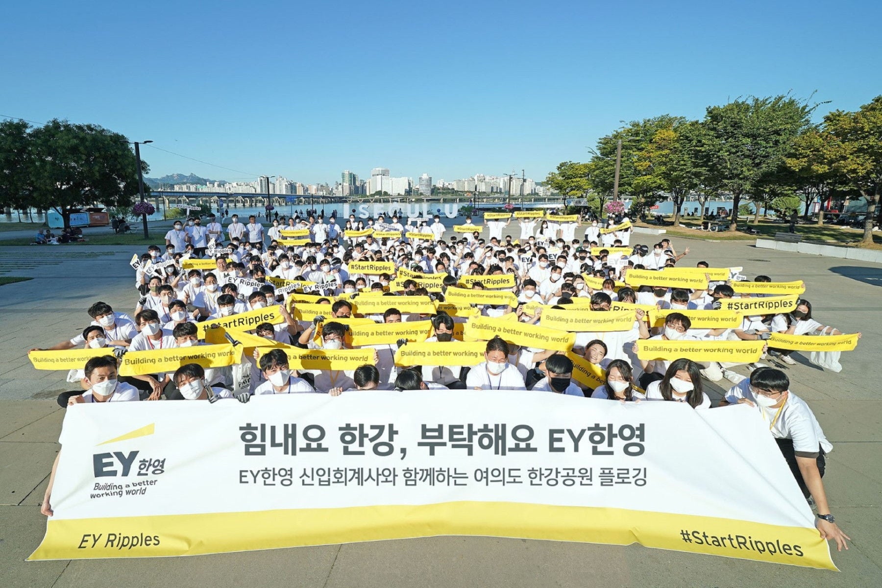 2022년 10월 7일, 서울 - 글로벌 회계·컨설팅 법인 EY한영(대표 박용근)은 신입 회계사 300여 명과 함께 여의도 한강공원 일대에서 쓰레기를 줍는 ‘플로깅(Plogging)’* 활동을 펼쳤다고 7일 밝혔다.