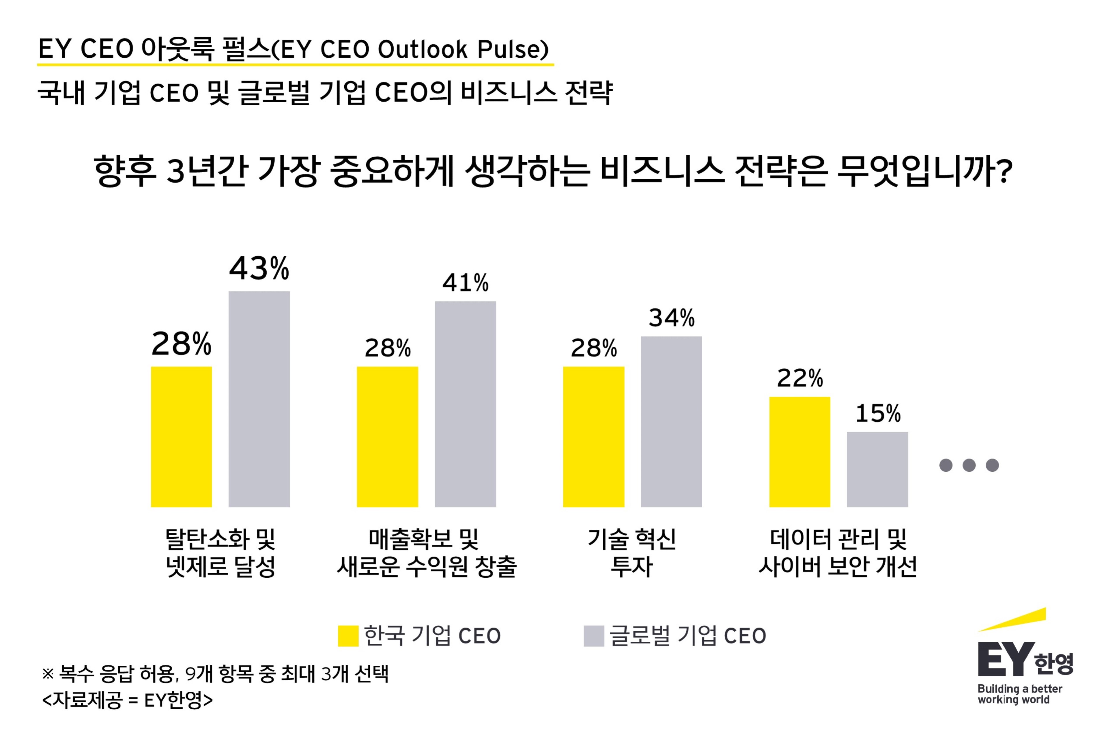 국내외 CEO 향후 3년간 가장 중요한 전략 1위 ‘탈탄소화 및 넷제로 달성’