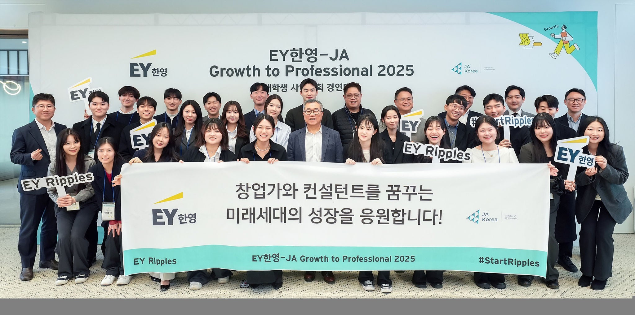 올해로 6회를 맞은 ‘EY한영-JA 그로스 투 프로페셔널’ 프로그램은 EY한영과 비영리 청소년 교육 단체 JA Korea가 공동 주최하는 연례 사회공헌활동이다. 이 프로그램은 EY의 사회공헌 캠페인 ‘EY 리플스(EY Ripples)’의 핵심 영역 중 하나인 ‘미래 세대 지원’의 대표 프로그램으로, EY한영 임직원들이 가진 전문 지식과 경험을 나눔으로써 대학생들이 경쟁하기 보다 성장하는 것에 초점을 두어 전문가로 발전할 수 있도록 돕는 것을 목표로 한다.