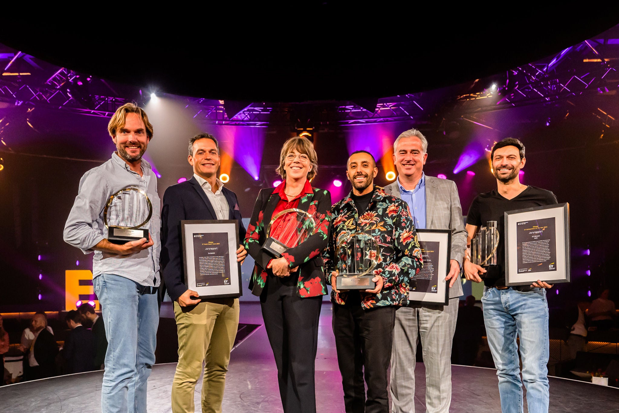 Claudy te Boome reikte voor de derde keer de Social Impact Award uit. Claudy: “Jaarlijks kost de problematiek rondom schulden de samenleving 17 miljard euro, het is een gigantisch maatschappelijk probleem. Socialdebt, onder leiding van oprichter en ceo Jamal Oulel, heeft de intrinsieke motivatie om verandering waar te maken en is een terechte winnaar van de EY Social Impact Award 2023. De potentie en ambitie van Socialdebt om jongeren een schuldenvrije toekomst te bieden, waarin ze zich kunnen focussen op hun welzijn en persoonlijke groei, transformeert de sector en heeft de jury overtuigd. Deze eervolle prijs erkent de unieke combinatie van persoonlijke betrokkenheid, maatschappelijk engagement en ondernemerschap die Jamal laat zien.”