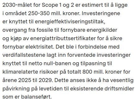 Det er ingen egen IFRS®-regnskapsstandard som gjelder for klimarelaterte forhold, men klima kan påvirke flere regnskapsmessige områder. Regnskapet spiller en viktig rolle i å gi relevant informasjon til brukere for å gjøre beslutninger, og selv om den umiddelbare påvirkningen av klimarelaterte forhold på regnskapet ikke nødvendigvis er kvantitativt betydelig er det en økende forventning fra interessenter om at selskaper forklarer hvordan klimarelaterte forhold er hensyntatt i utarbeidelsen av regnskapet, i den grad det er vesentlig i et kvalitativt perspektiv.