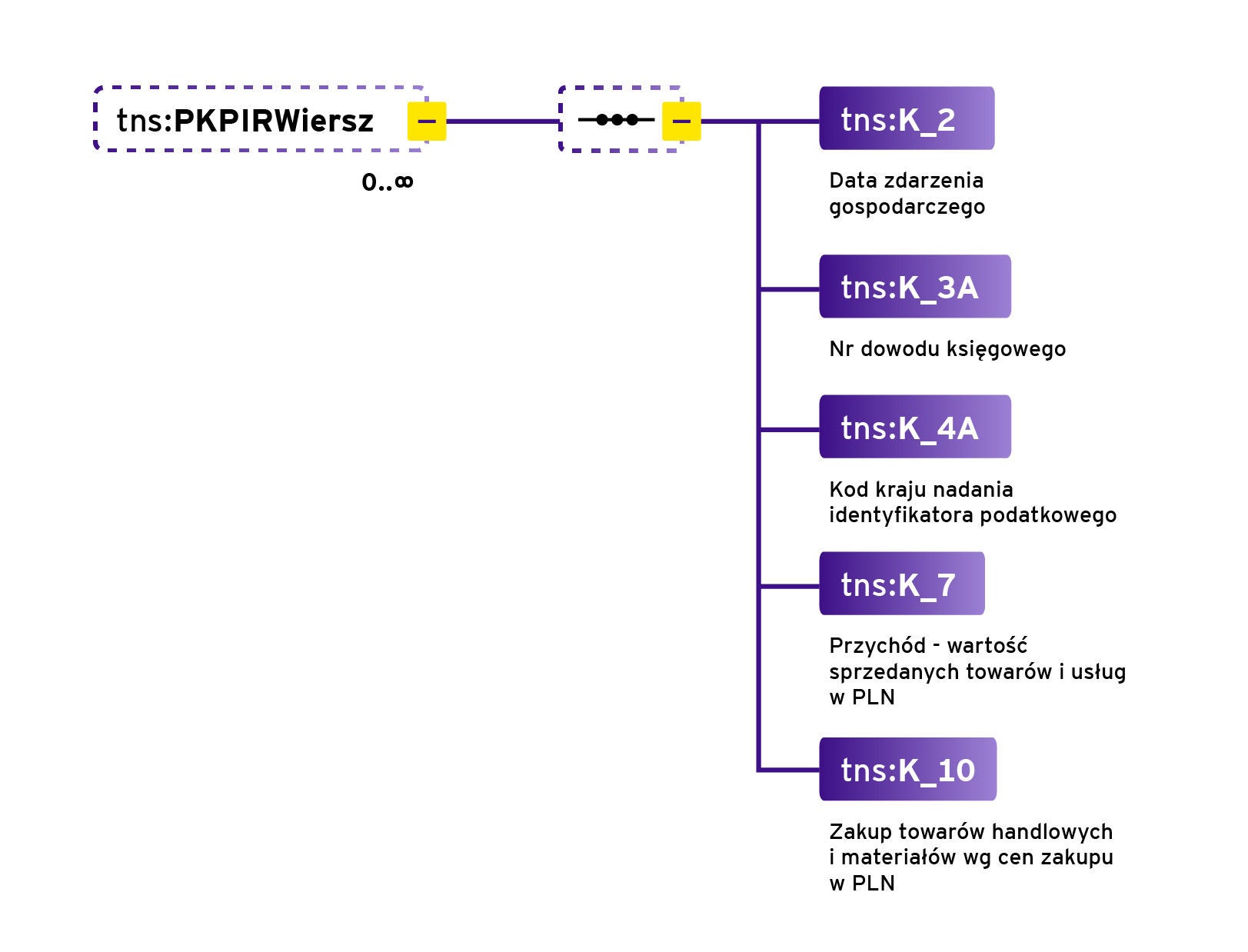 Warto również wskazać, że w przypadku JPK_PKPiR obowiązkowe do zaraportowania w przypadku wypełnienia węzła PKPiRWiersz będą również imię i nazwisko kontrahenta, jego nazwa firmy oraz adres i opis zdarzenia gospodarczego (oczywiście wszystko ujmując w chronologicznie prowadzonych zapisach – lp. zapisu).