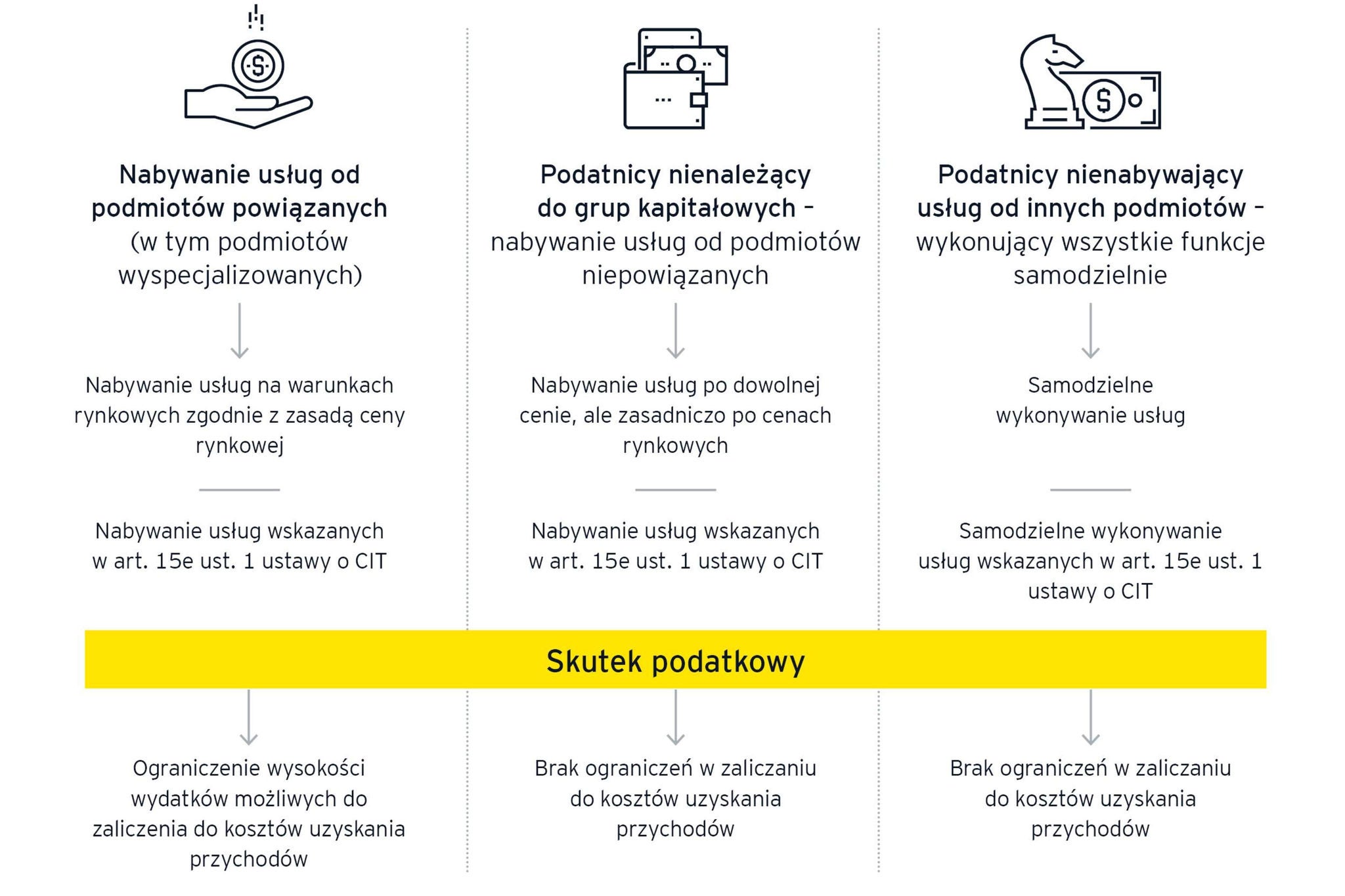 Artykuł 15e ustawy o CIT wprowadza ograniczenia w rozliczaniu kosztów uzyskania przychodów, które podatnik może rozpoznać z tytułu określonych usług niematerialnych i należności licencyjnych nabywanych od podmiotów powiązanych i podmiotów, które mają miejsce zamieszkania, siedzibę lub zarząd w tzw. raju podatkowym.