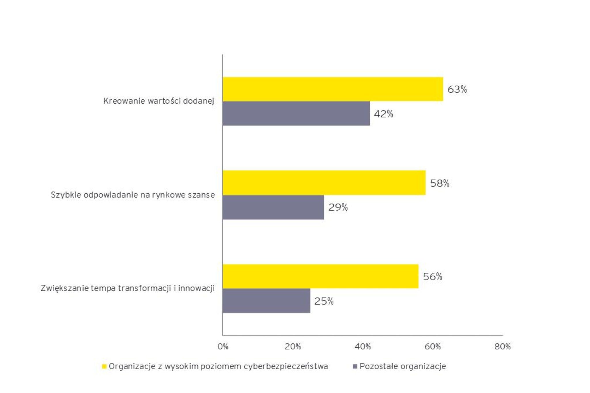 Z badania EY wynika, że członkowie C-suite często przeceniają skuteczność podejścia ich organizacji do cyberbezpieczeństwa (48% zadowolonych w porównaniu do 36% CISO). Większa przejrzystość w rozmowach z liderami wyższego szczebla i zrozumienie wszystkich ryzyk są niezbędne do czynienia postępów we wdrażaniu sztucznej inteligencji w innych funkcjach organizacji. Pozwoli to wygenerować wartość dodaną płynącą z wysokiego poziomu ochrony cybernetycznej i wesprze biznes. Liderzy ds. cyberbezpieczeństwa mogą napędzać sprzedaż i zwiększać zyski poprzez budowanie zaufania klientów.