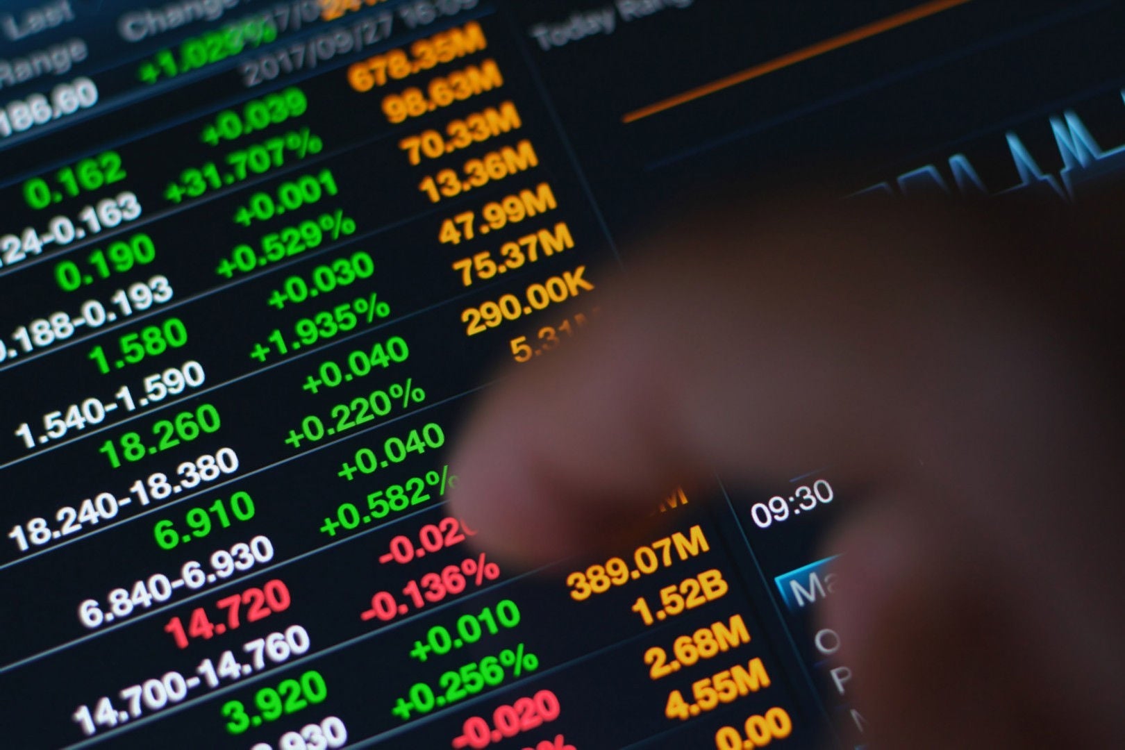 uma pessoa analisando números em uma tela touch screen