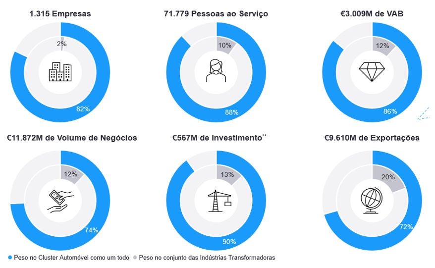 O cluster automóvel nacional é constituído maioritariamente por pequenas e médias empresas (PME) e grandes empresas da indústria de componentes e sistemas, sendo reduzido o número de OEM presentes no país (a maioria das empresas de componentes automóvel têm capital maioritariamente português, possuindo centros de decisão nacionais).