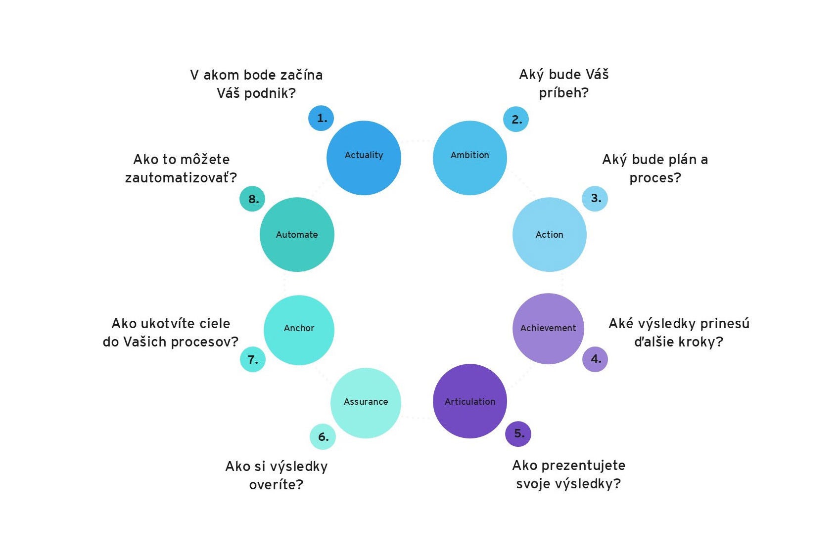 Ciele, ktoré usmernia dlhodobé kroky, sú kľúčové. Bez nich sa môžu opatrenia na zmenu vymknúť spod kontroly alebo stratiť efektívnosť. To vedie nielen k plytvaniu úsilím a zdrojmi, ale môže to tiež vyústiť do demotivujúceho chaosu nedokončených projektov a nesplnených sľubov. Následne sa oslabuje dôvera – tak vo vnútri firmy, ako aj mimo nej.