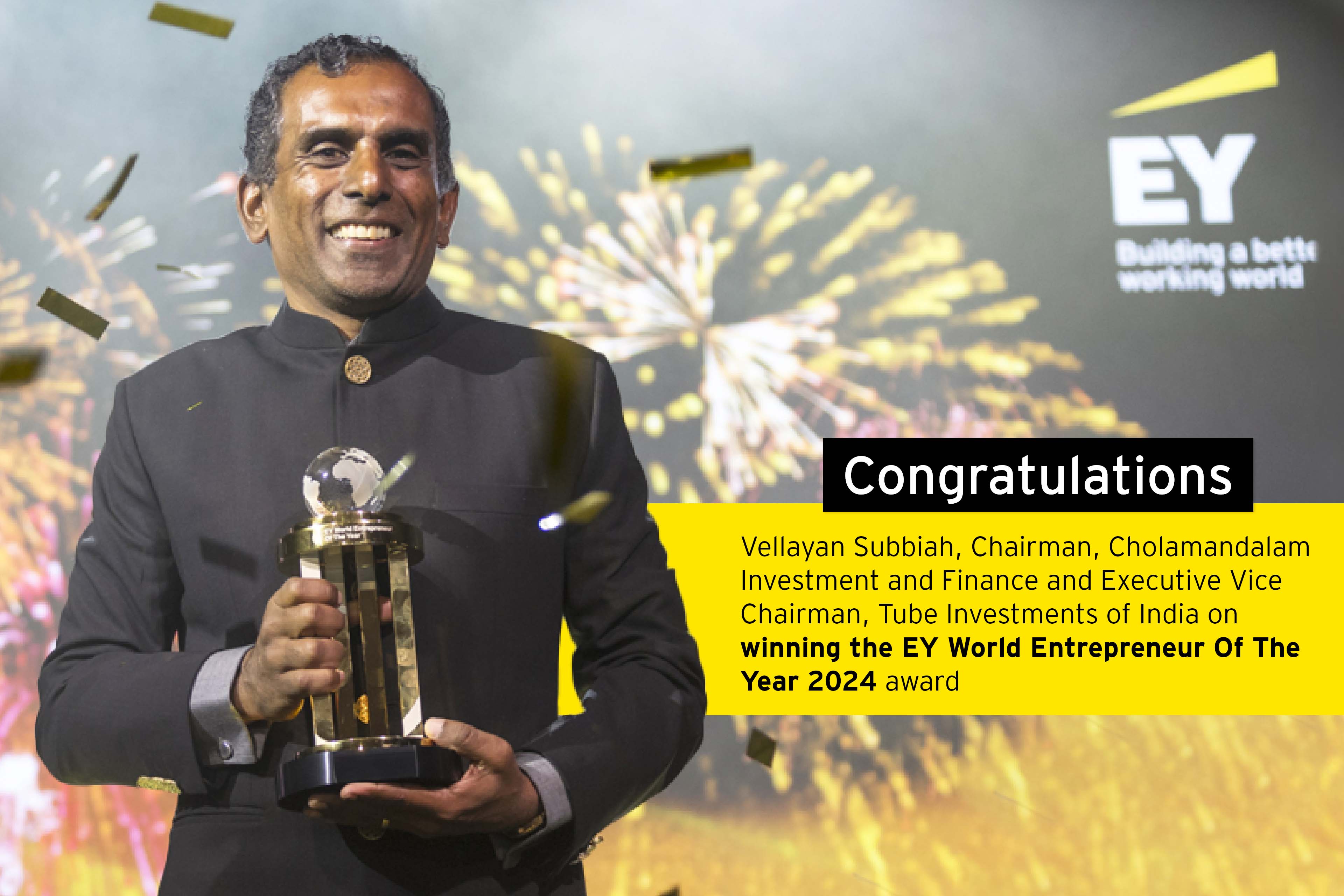 - Za víťaza tohtoročného svetového finále súťaže EY Podnikateľ roka bol na slávnostnom ceremoniáli v monackom Salle des Etoiles vyhlásený Vellayan Subbiah, výkonný podpredseda spoločnosti Tube Investments of India („TII“) a predseda spoločnosti Cholamandalam Investment and Finance Co. Ltd. („Chola“).