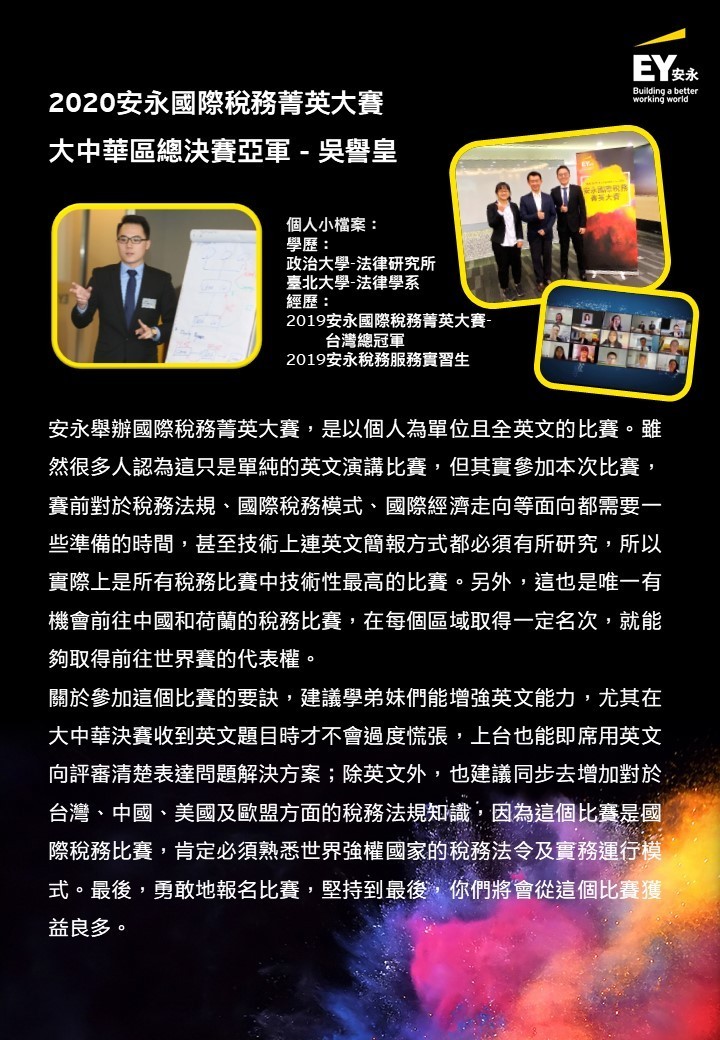 了解更多全球精彩賽事,詳見:安永國際稅務菁英大賽官網
