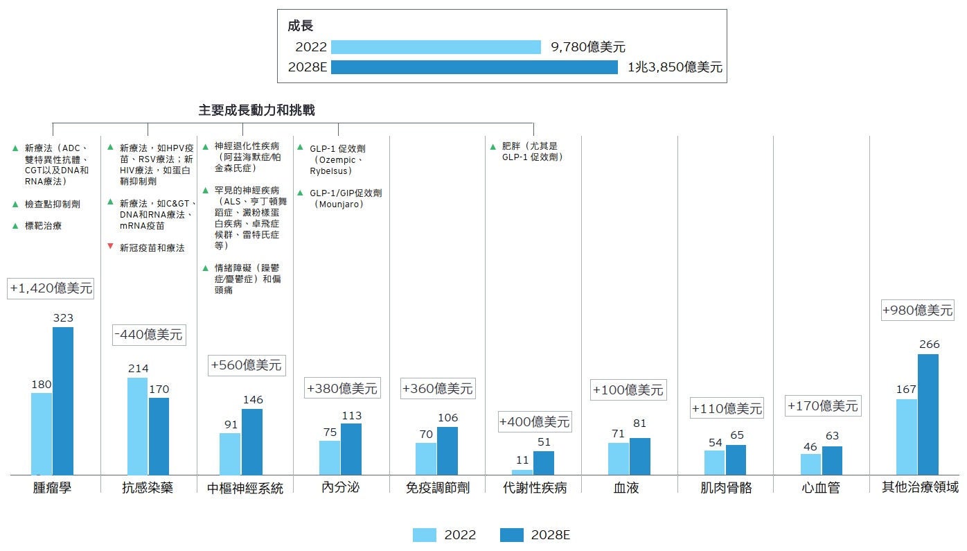 公司還需要隨時注意可能出現改變遊戲規則的創新,這些創新可能會擾亂市場並迫使策略轉變。自累積的試驗數據逐漸驗證新藥控制肥胖、改善心血管和代謝健康的效果以來,GLP-1受體促效劑已成為近期最重要的突破之一。肥胖、第二型糖尿病及相關疾病的高普遍率和尚未滿足的需求,代表內分泌和代謝治療領域預計在未來5年內將成長780億美元,主要由GLP-1藥物類別和相關產品推動,此機會的規模可能會讓製藥公司將併購火力導向該領域。