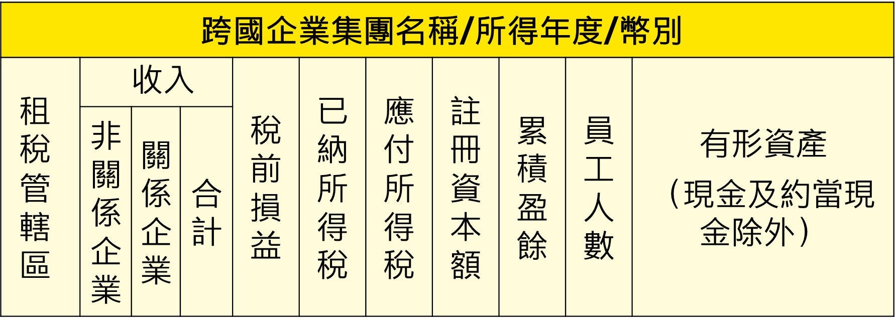 表A:跨國企業集團收入、稅負及業務活動概況