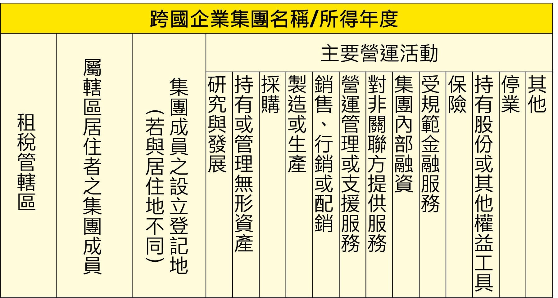 表B:跨國企業集團於各租稅管轄區之成員名單